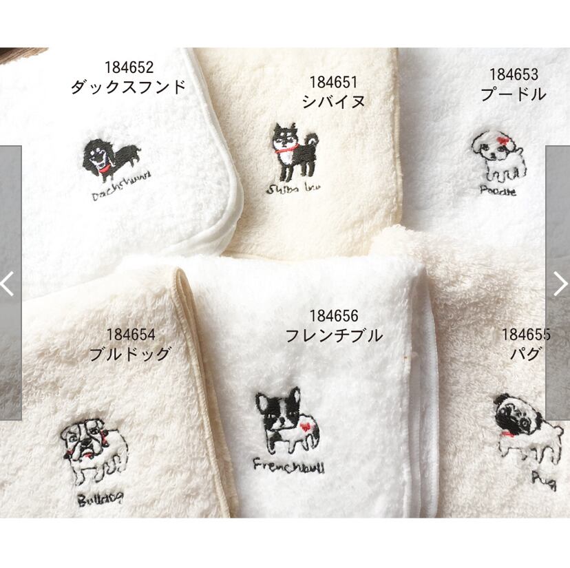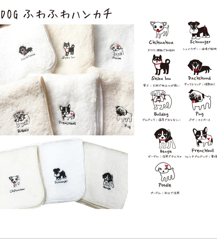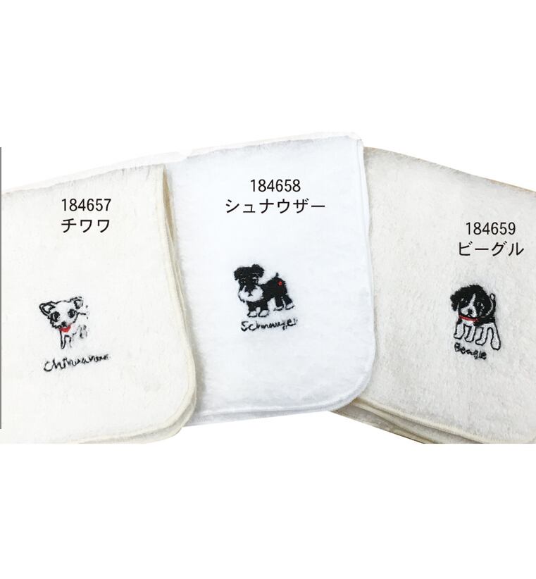 可愛い犬ぬ刺繍が施されたタオルハンカチです。