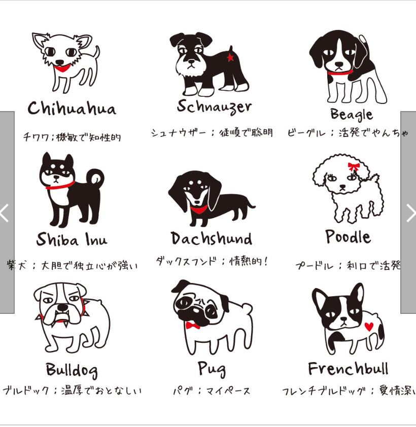 2枚目にそれぞれの犬種の特徴が書いてあります。