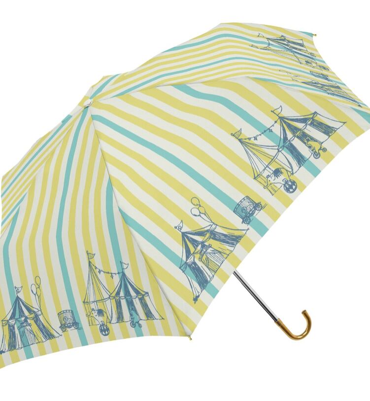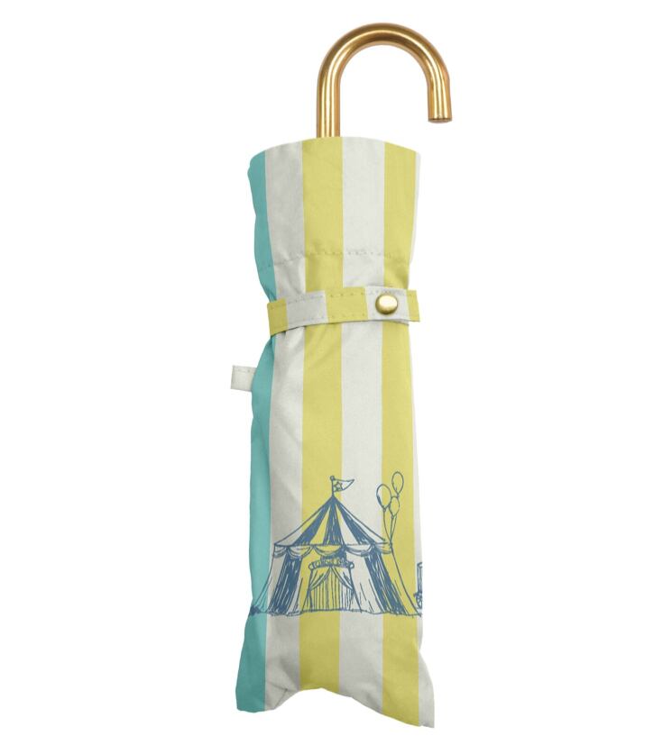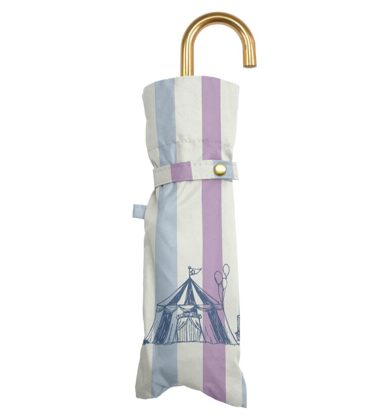 サーカスのテントが連なる様子がプリントされた耐風折り畳み傘。