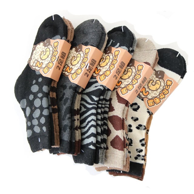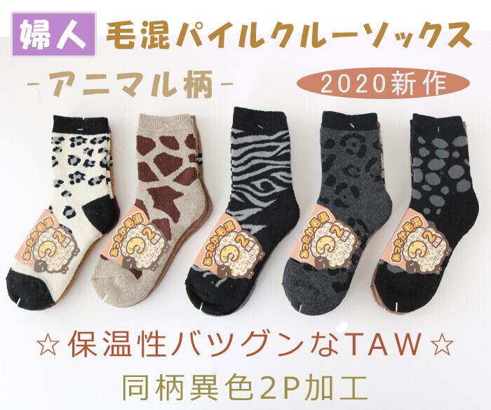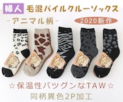 TAWパイルクルー丈ソックス アニマル柄 【2P加工】