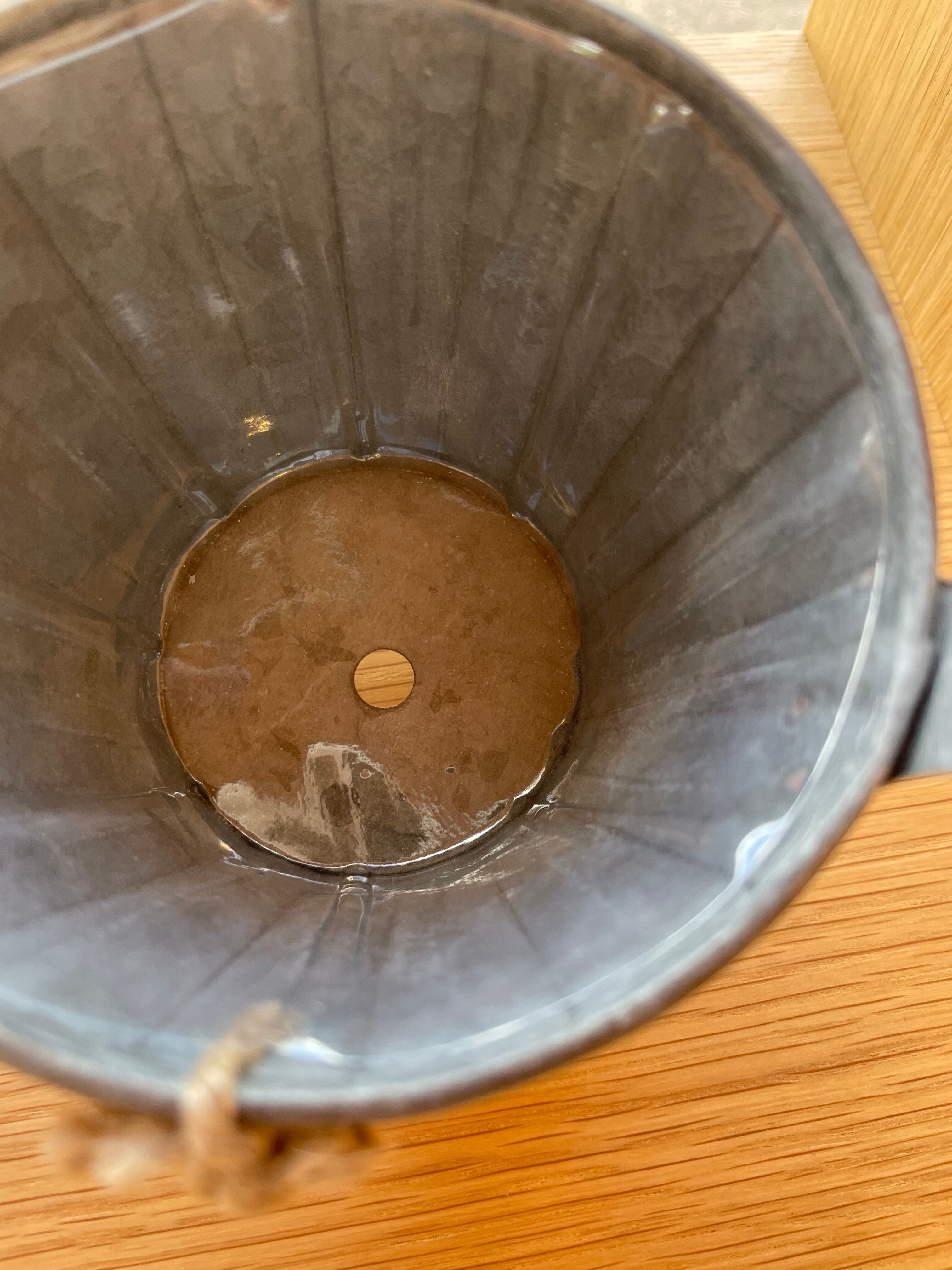 シンプルかつアンティーク加工がオシャレななバケツ型のポット(Sサイズ)