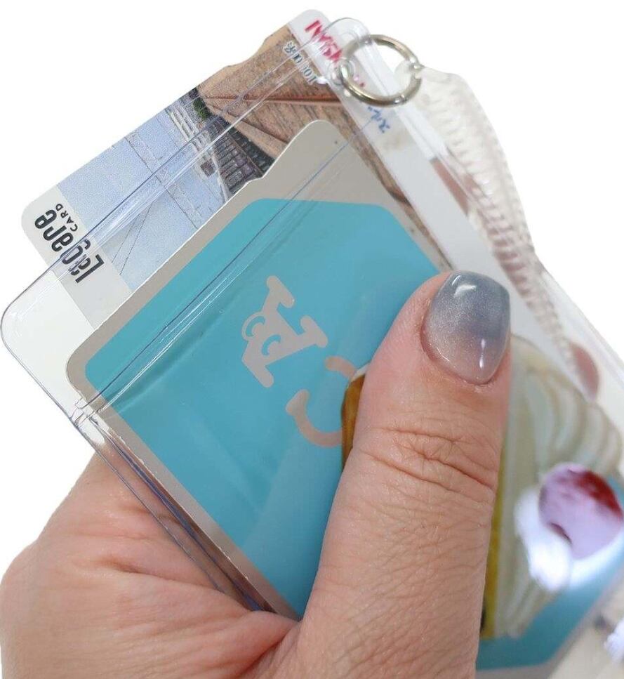 定期券やプリペイドカードなどを入れて、スプリングコイル付きなので、バッグにつけたまま使えます。