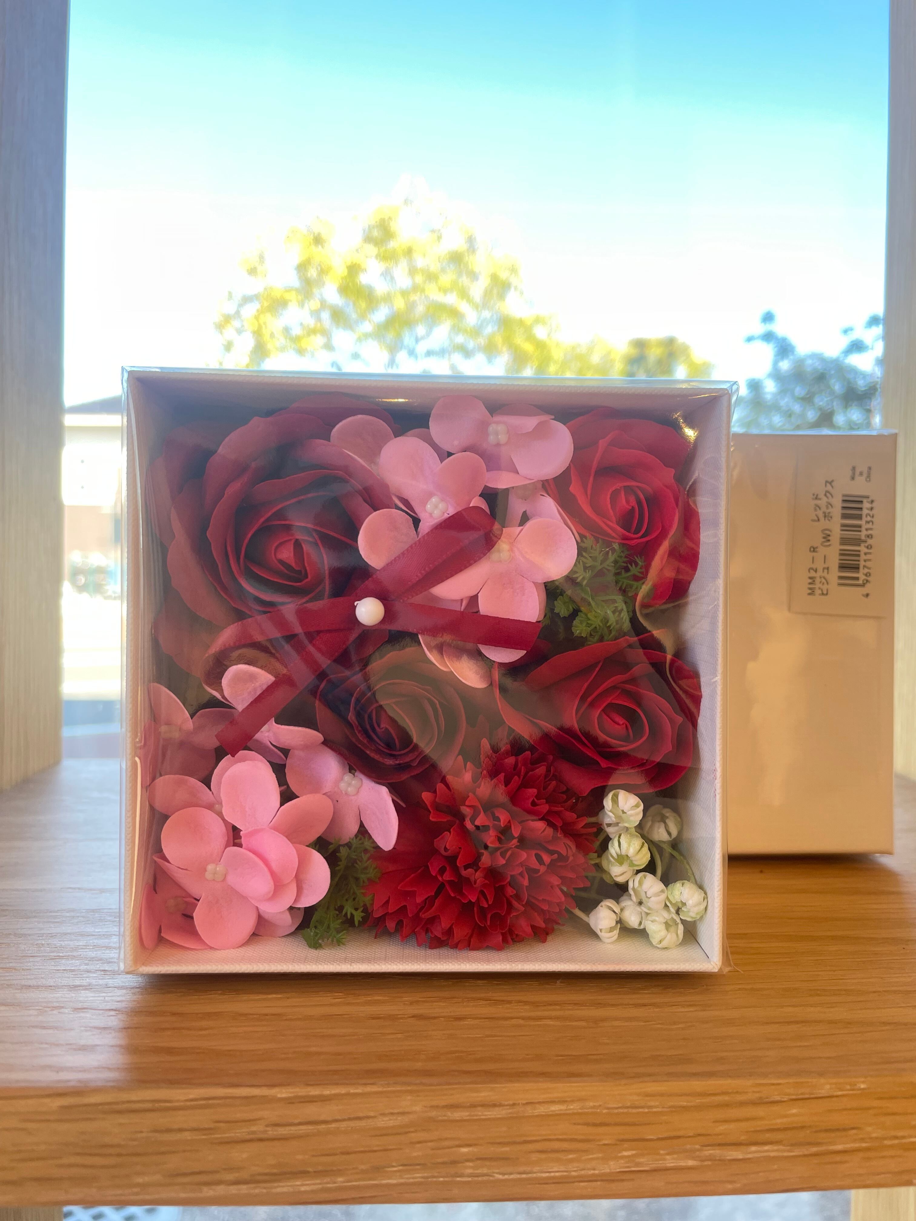 ソープフラワーアレンジメント レッド ビジューホワイトボックス