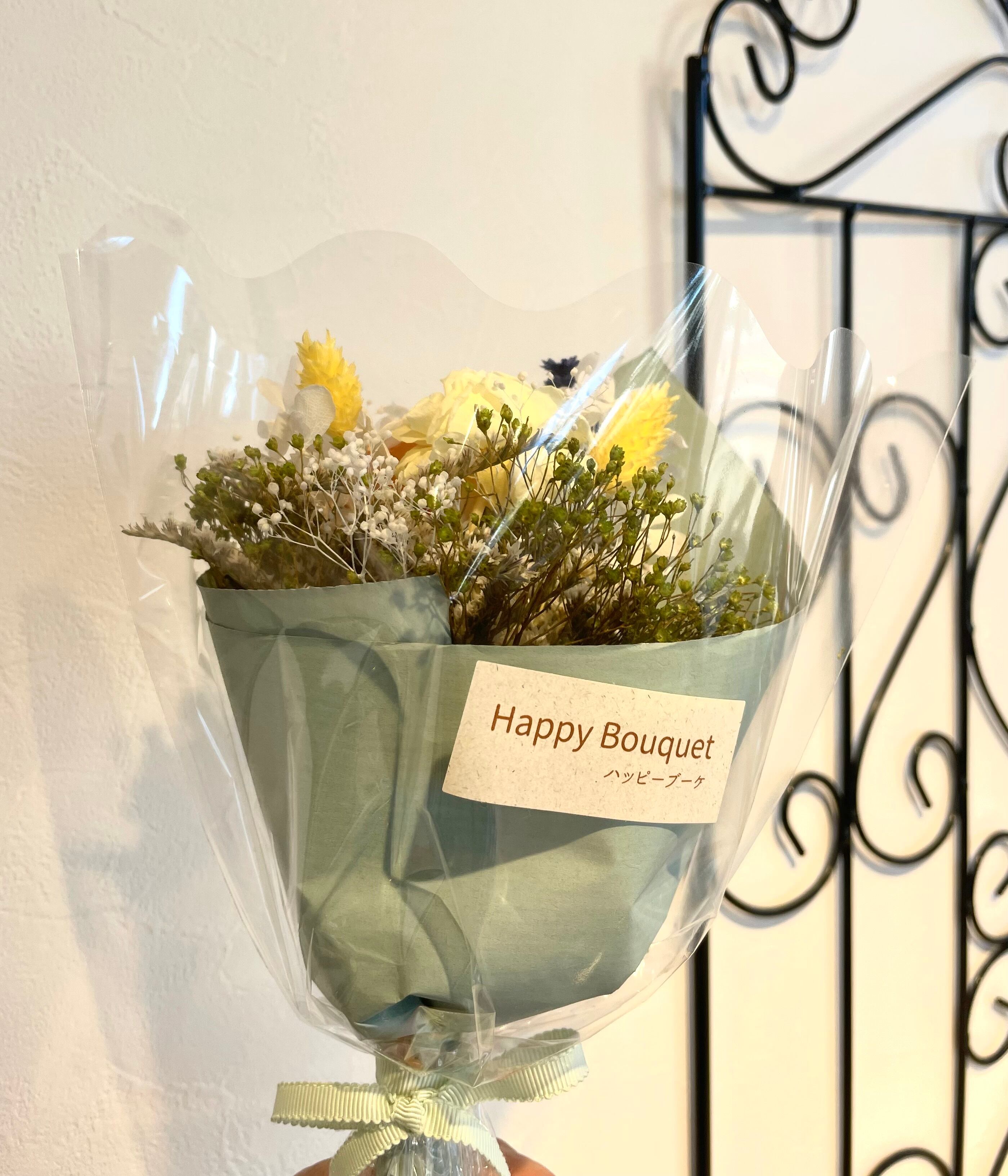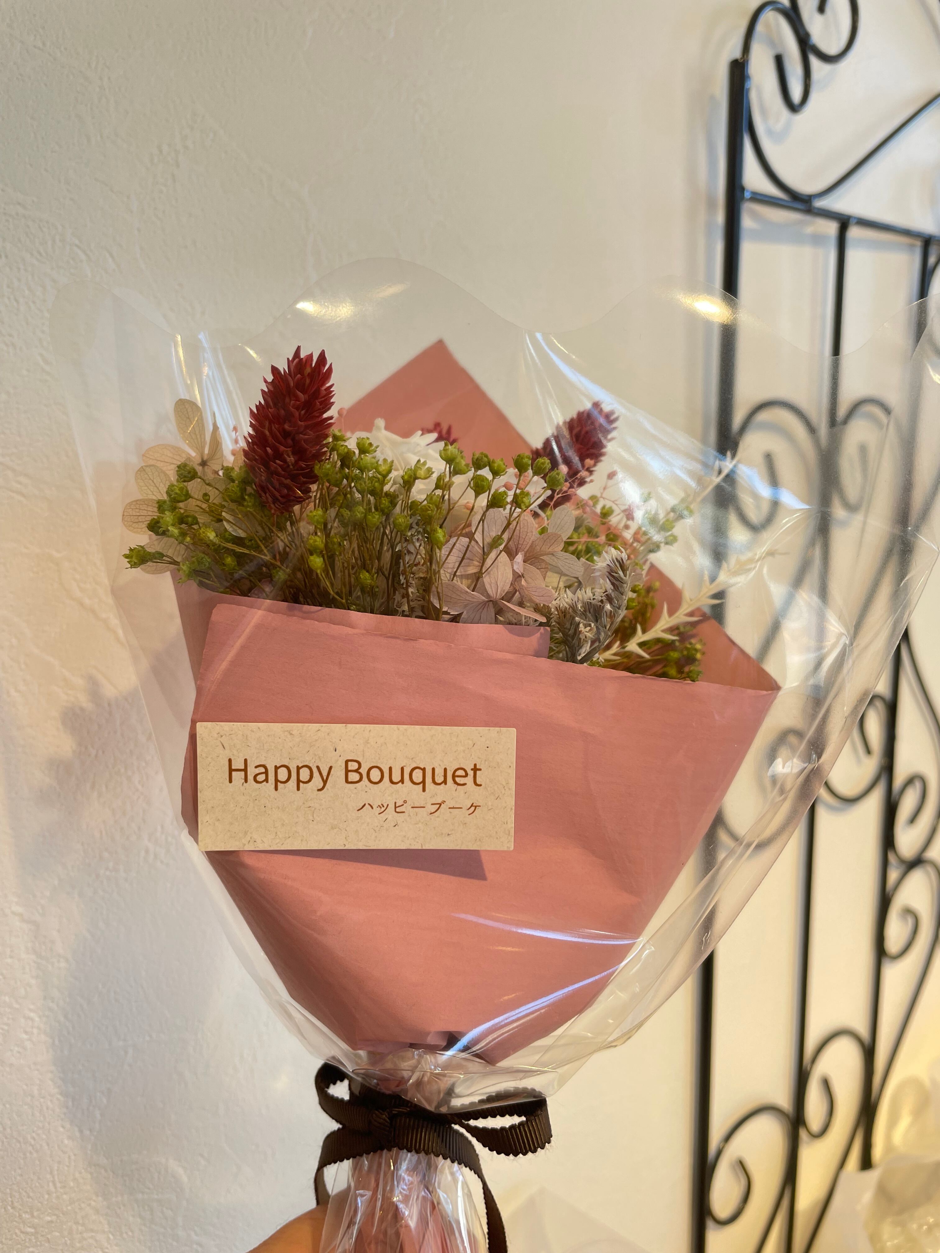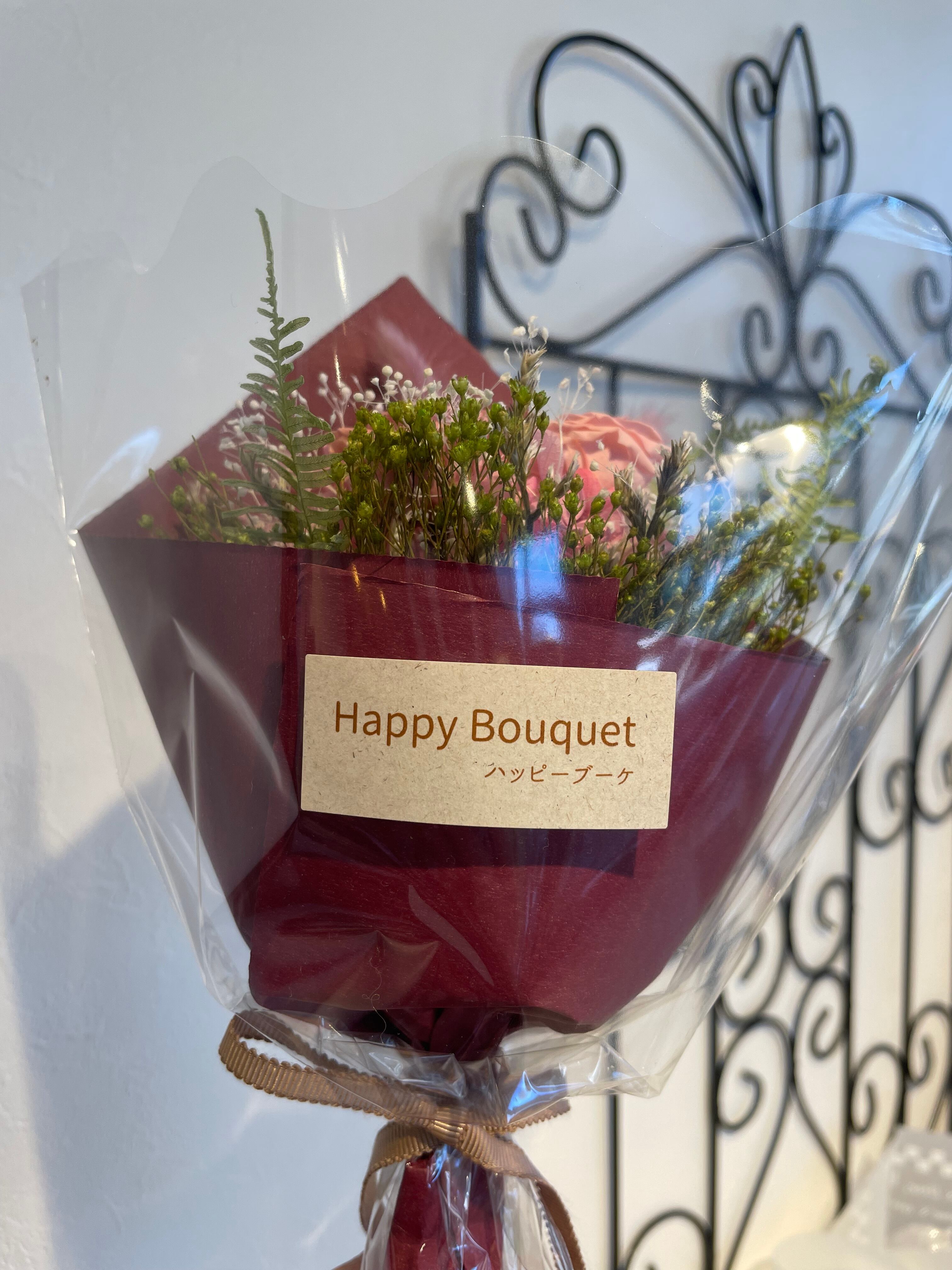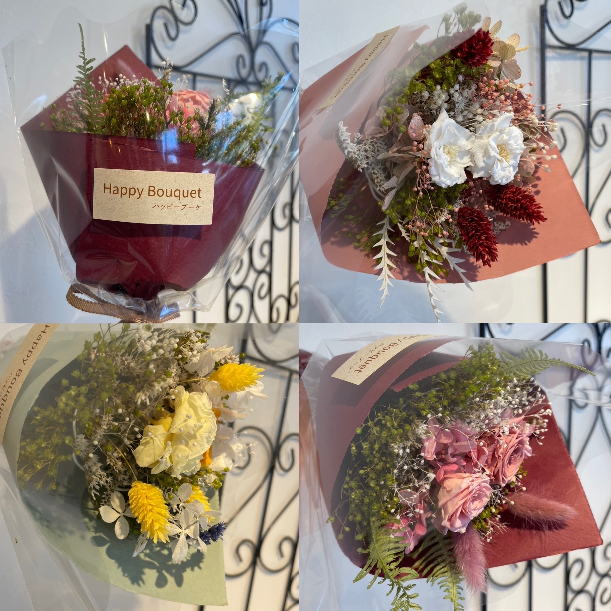 ※プリザーブドフラワーはブーケ内側のローズのみです。