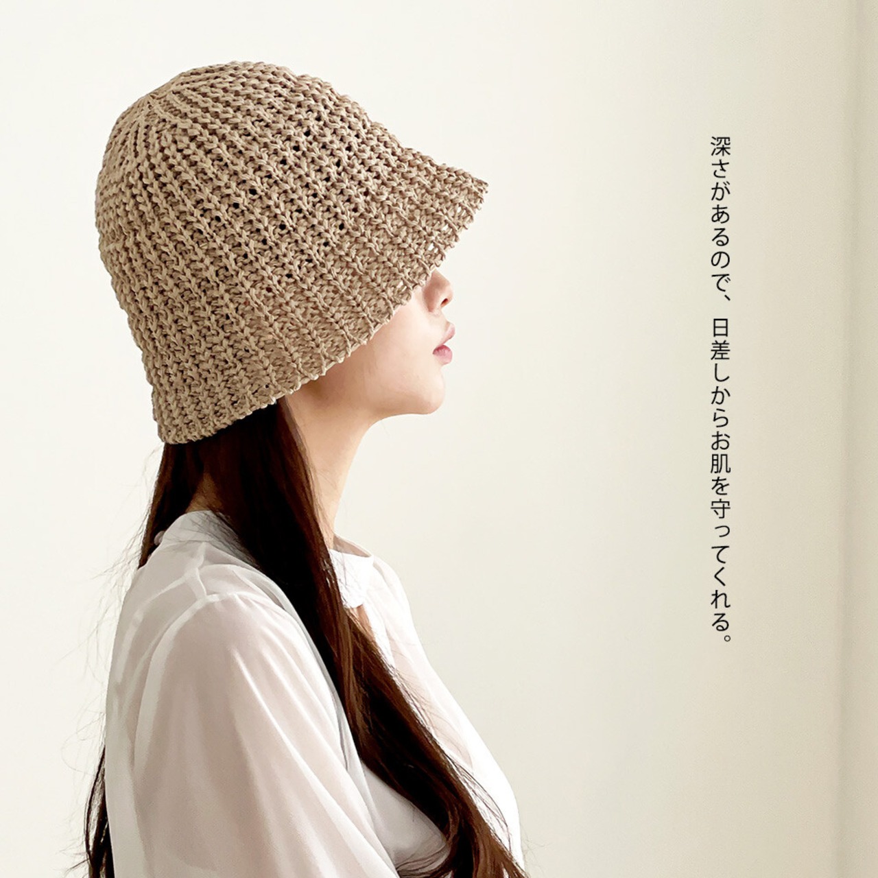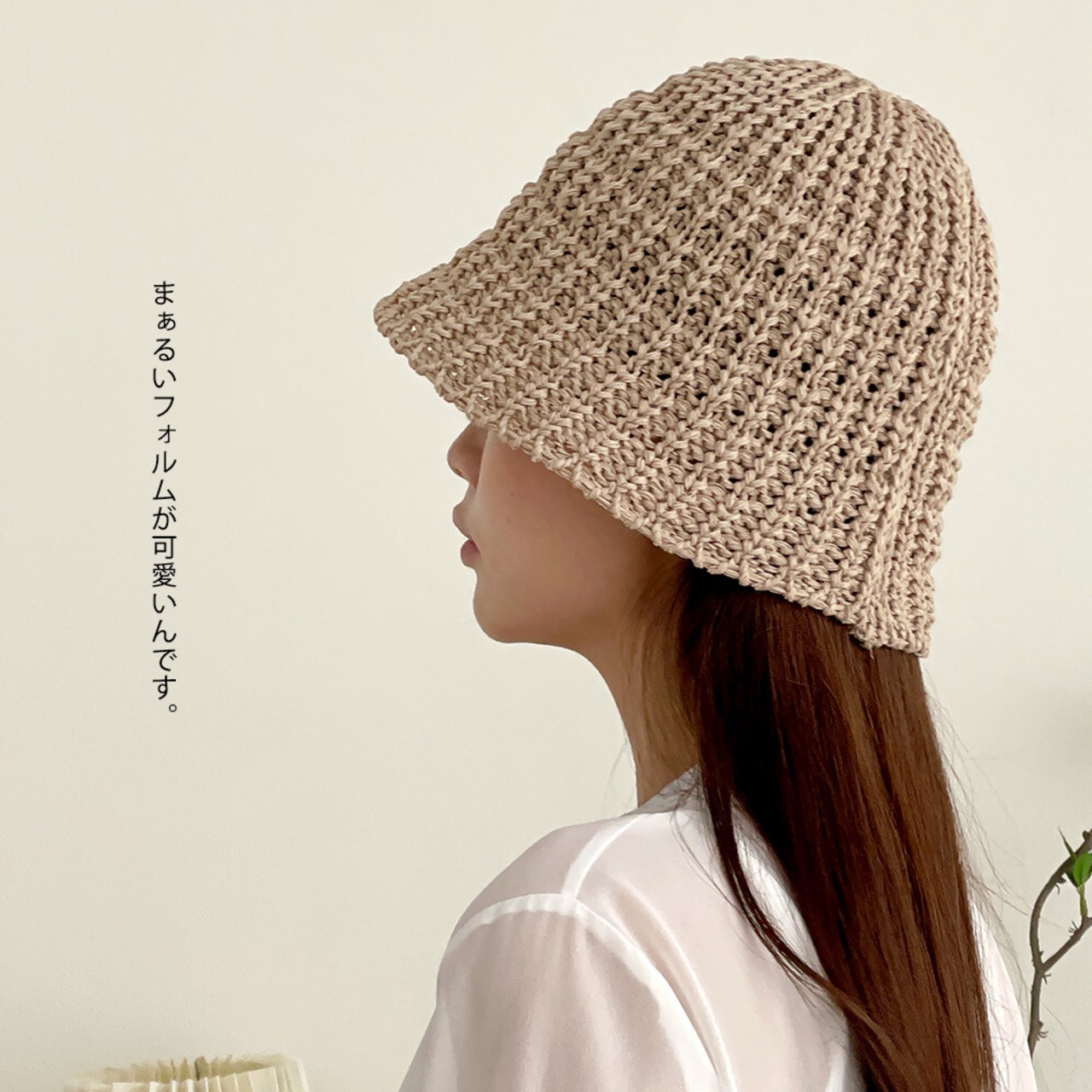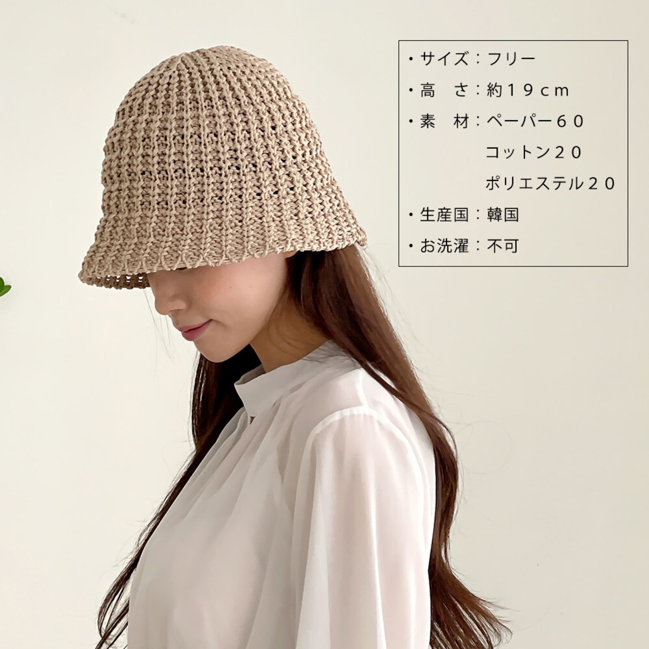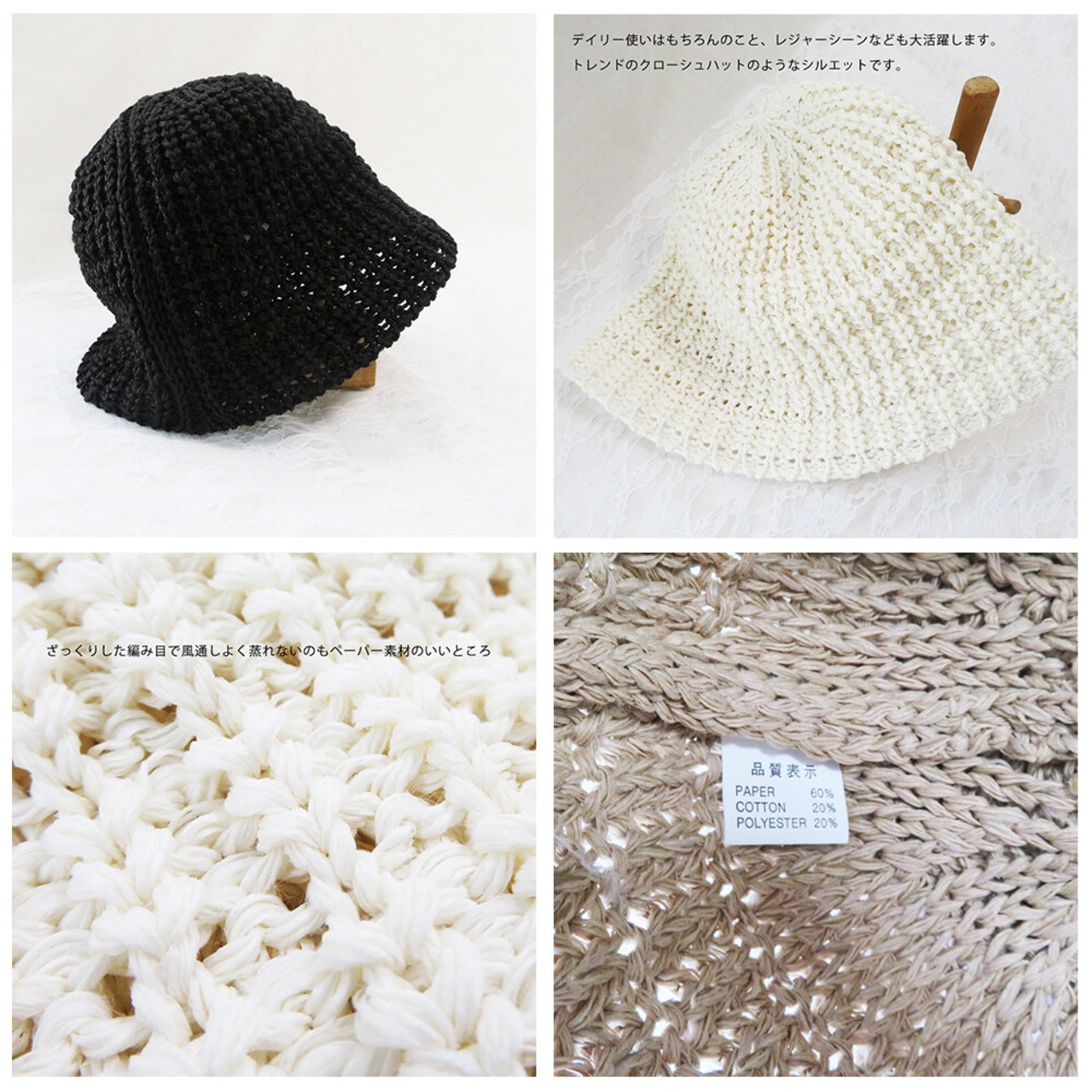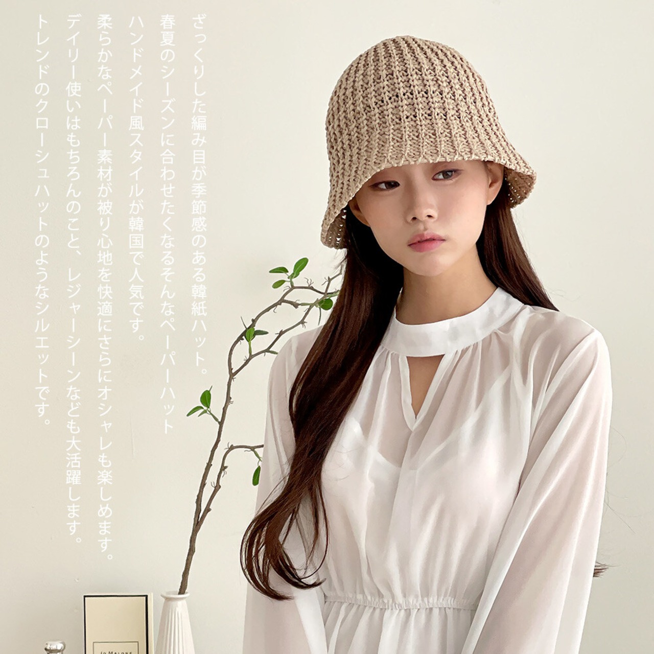 春夏 かぎ編みペーパーコットン バケットハット レディース 軽くて涼しい被り心地