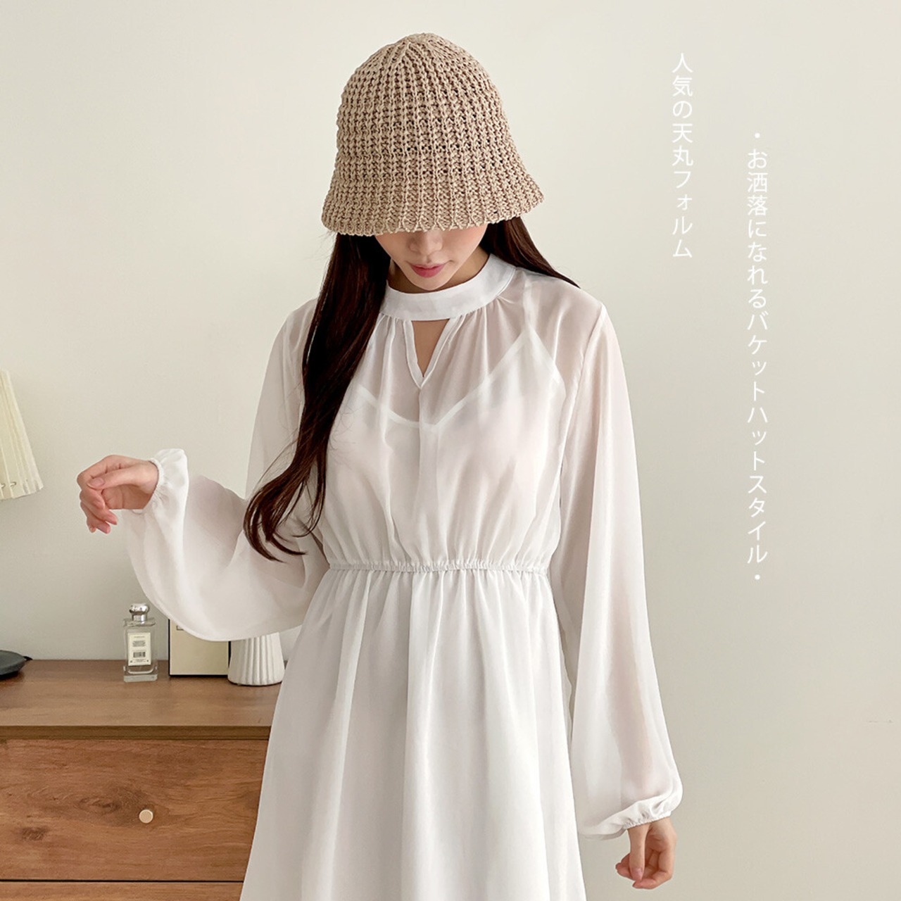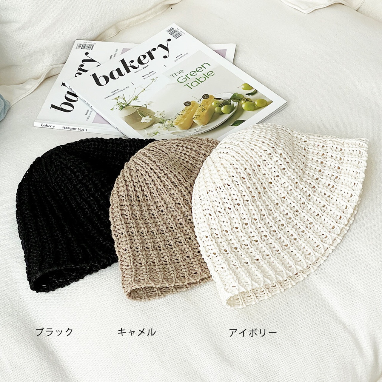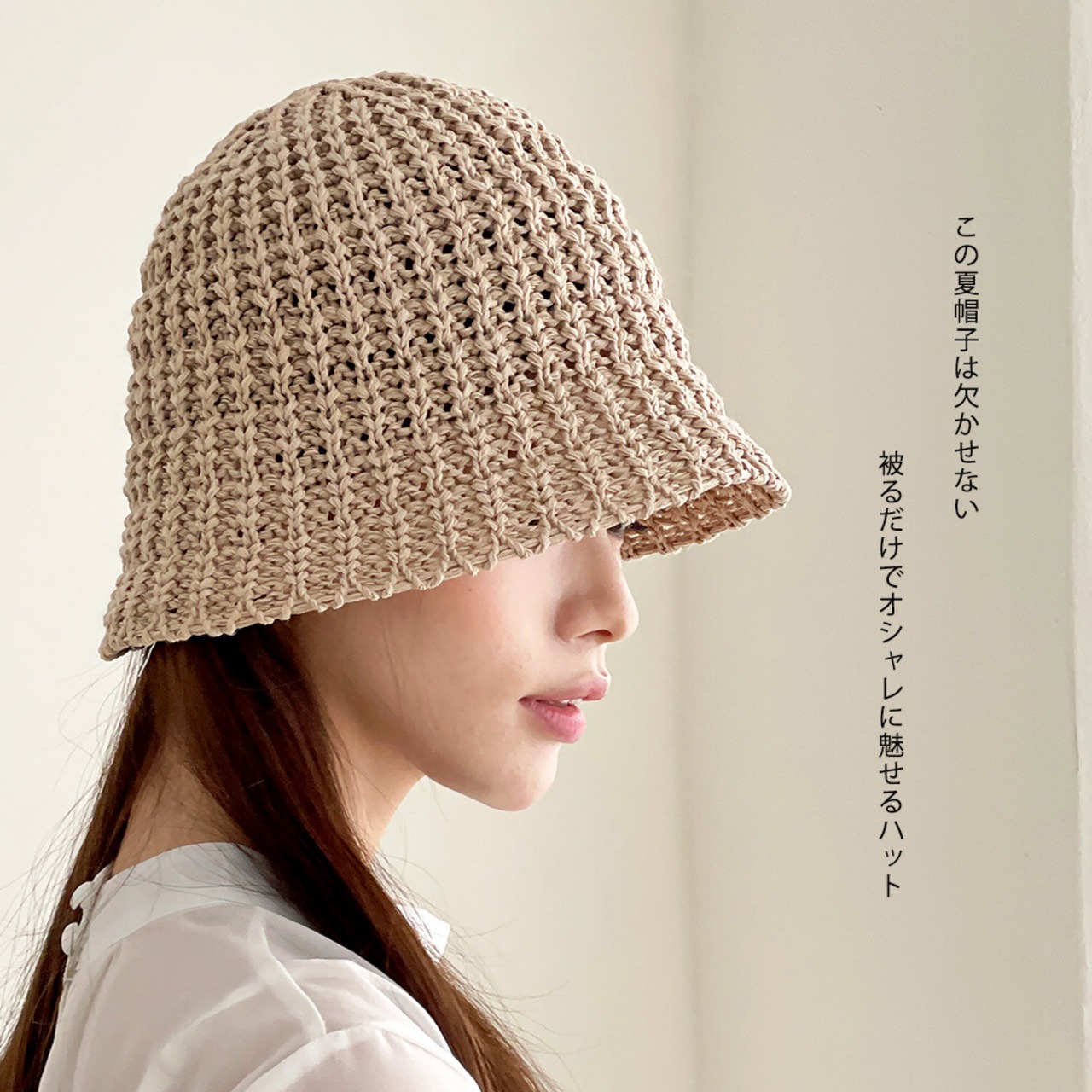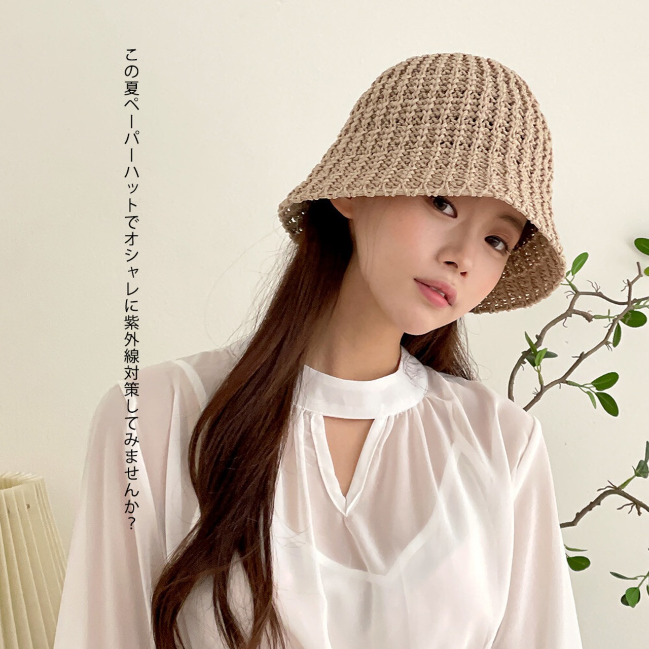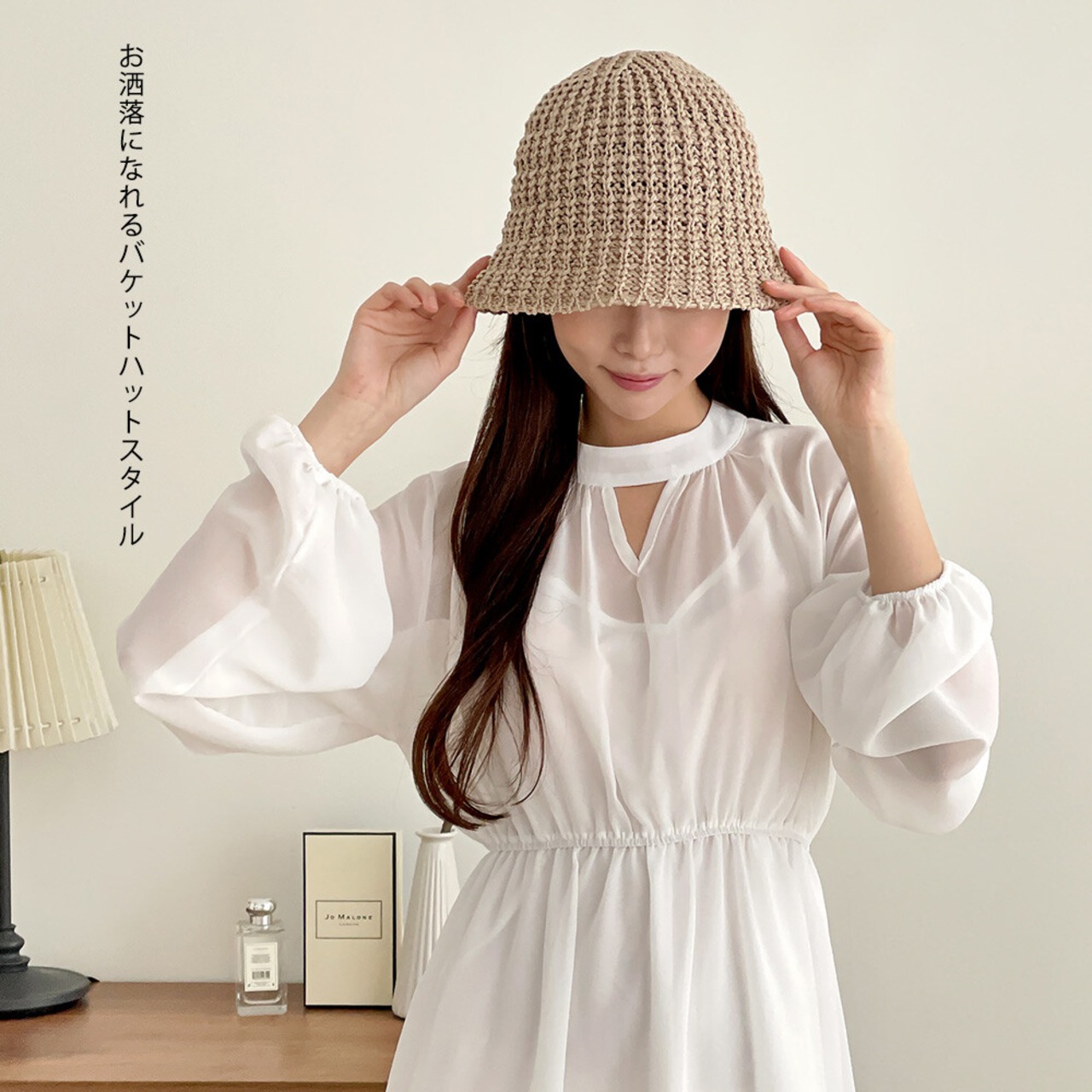 春夏 かぎ編みペーパーコットン バケットハット レディース 軽くて涼しい被り心地