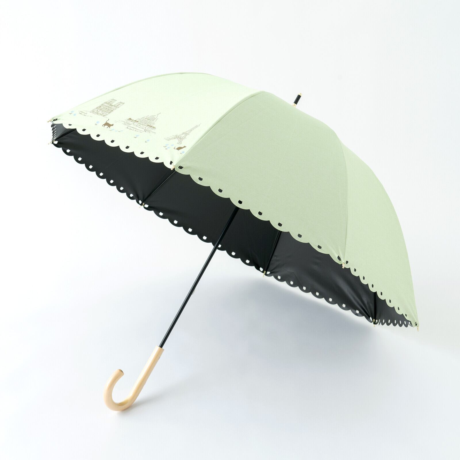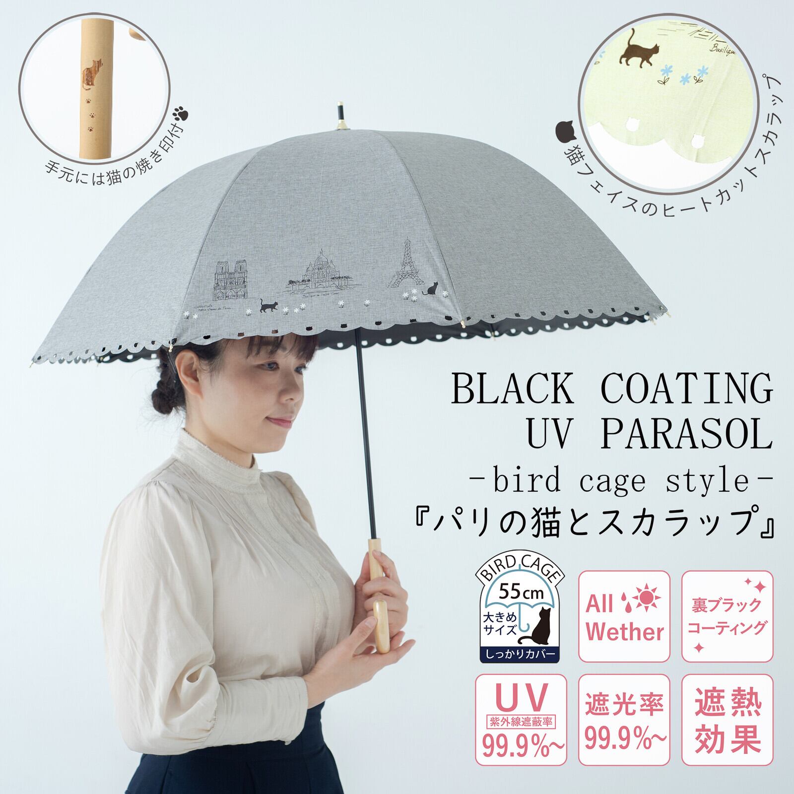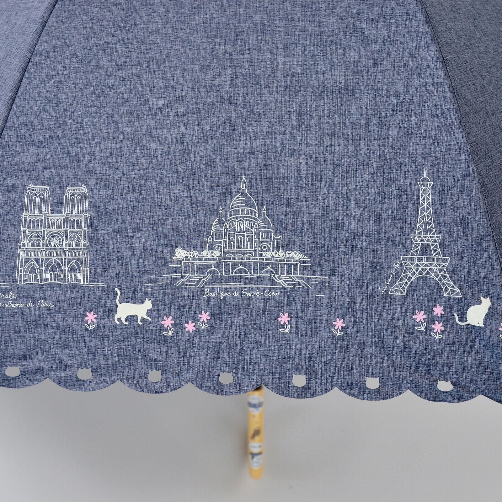 【遮光&遮熱】黒コーティング晴雨兼用傘 55cm手開き『パリの猫とスカラップ』【2024SS新作】