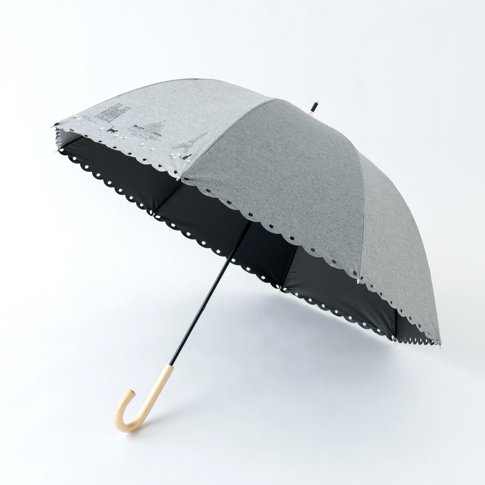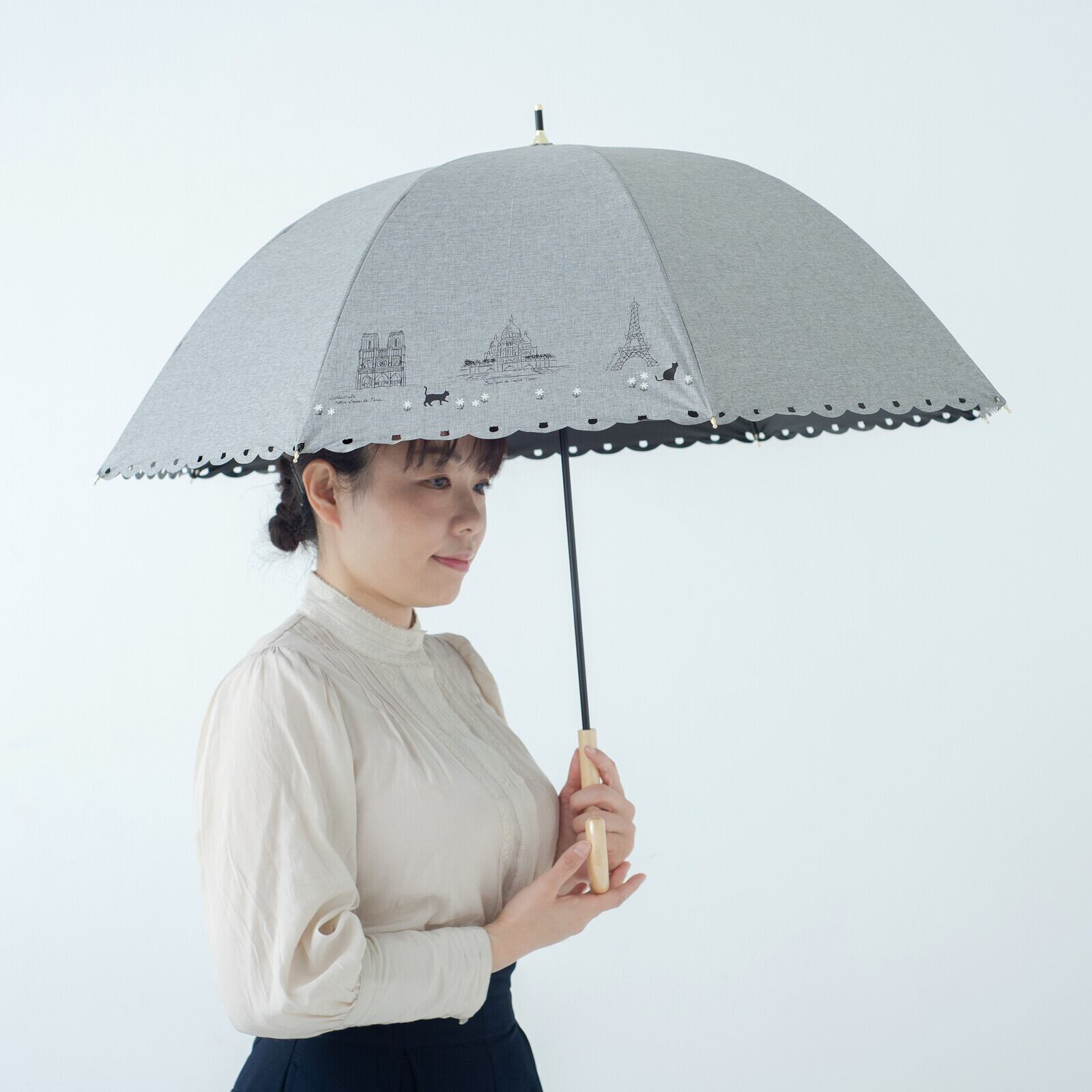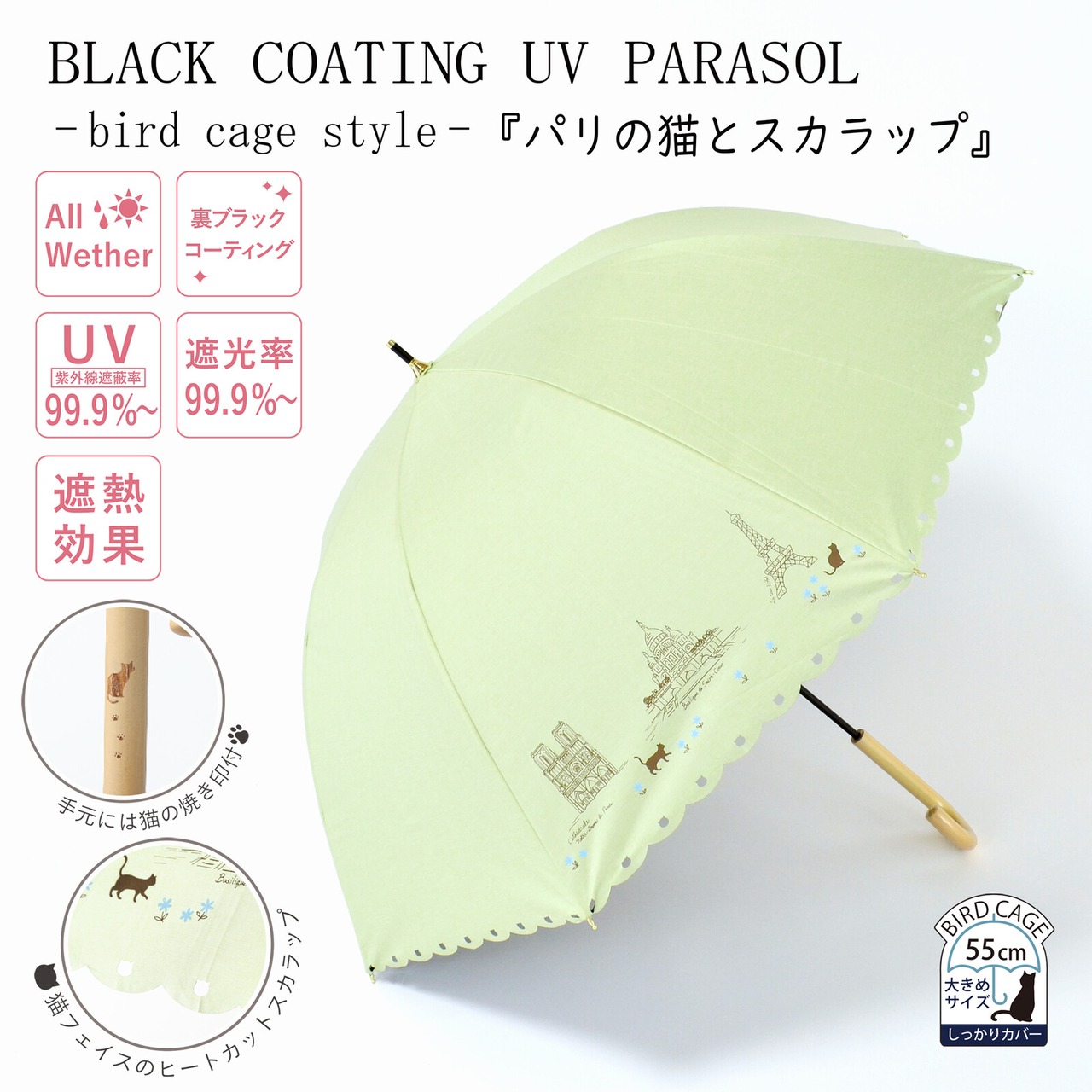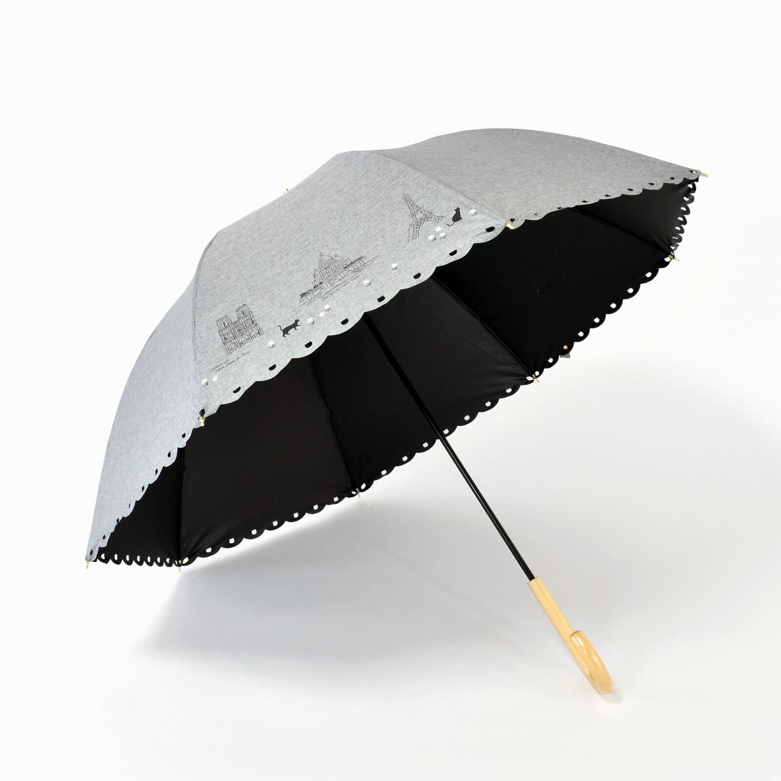 【遮光&遮熱】黒コーティング晴雨兼用傘 55cm手開き『パリの猫とスカラップ』【2024SS新作】