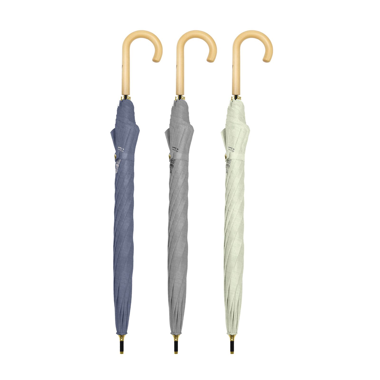 鳥かごのようなコロンとした丸みのあるフォルムの「バードケージタイプ」で、55㎝と大きめサイズは夏の強い陽射しもカバーしてくれます。はっ水・防水加工も施されているので、とっさの雨でもお使いいただけます。強度と柔軟性に優れたガラス繊維強化プラスチック「グラスファイバー骨」を親骨と受骨に使用しているので、軽くて丈夫な晴雨兼用傘です。傘を閉じる際に爪や指を挟まないよう、セーフティーカバー(安全ろくろ)付き。