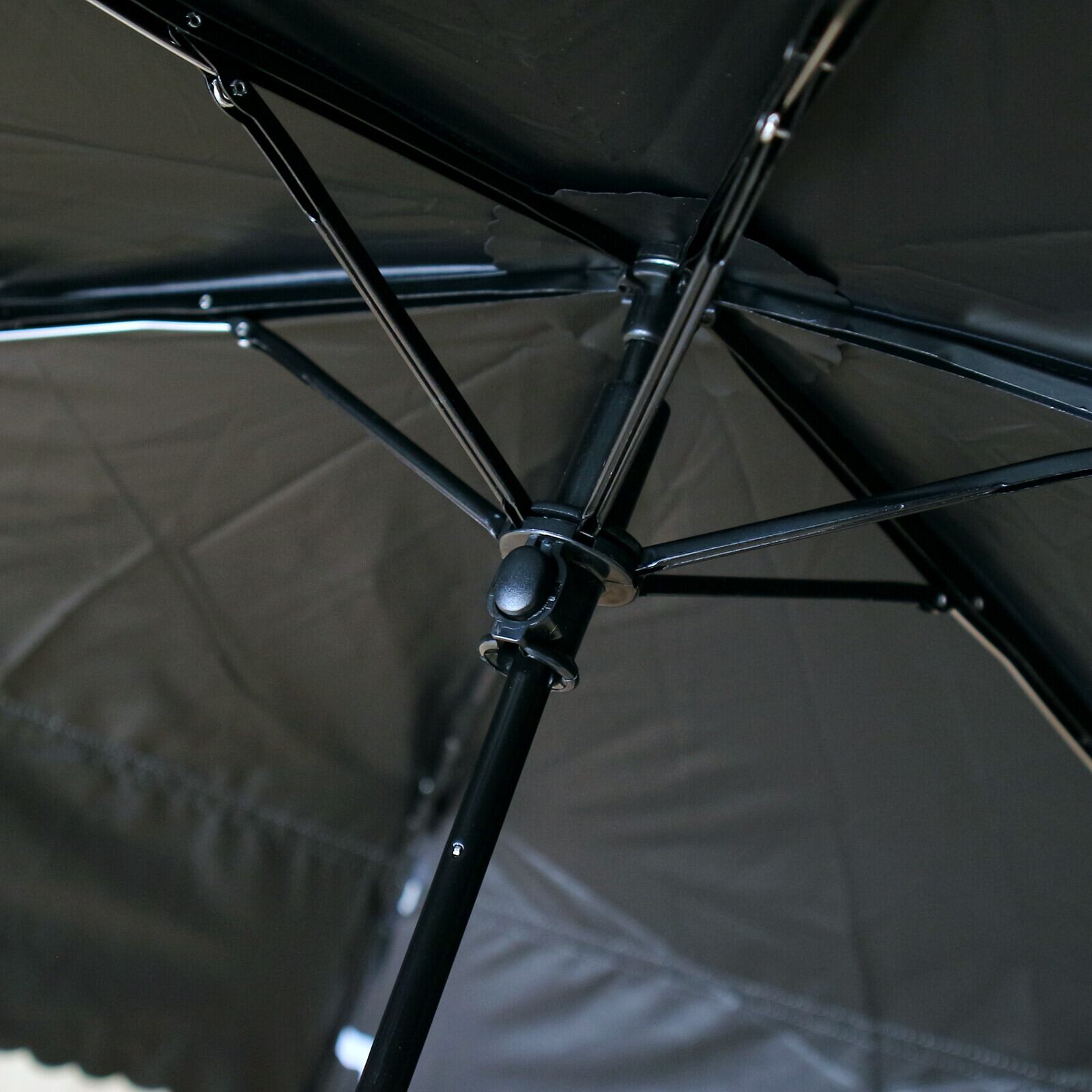 生地裏面に黒のポリウレタンコーティング加工を施しており、遮光&紫外線遮蔽率&遮熱効果に優れた(※)機能性パラソル。★遮光率&紫外線遮蔽率は全色99.9%以上(UPF評価 全色50+)