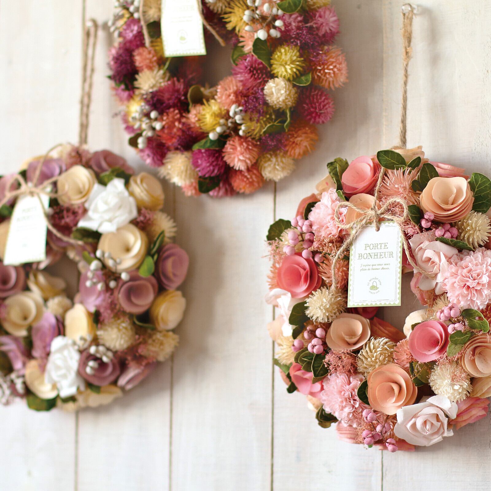 子供から大人・男女ともに好まれるお洒落で可愛い春のリースです。